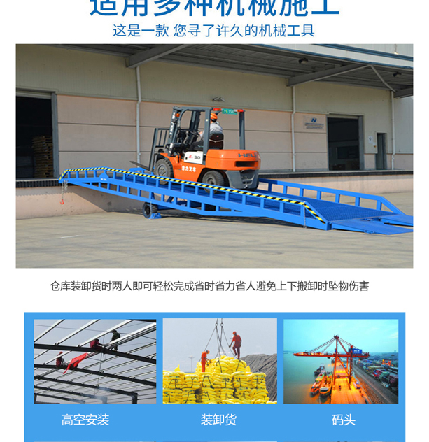 該系列固定式登車橋廣泛應(yīng)用于裝卸貨物頻繁的倉儲(chǔ)物流基地,多種車型的企業(yè)、倉庫、車站、碼頭、郵政運(yùn)輸、物流配送等場(chǎng)所。該電動(dòng)登車橋與月臺(tái)和為一體,在倉庫和車輛之間搭起橋梁,輔助叉車或其他運(yùn)輸設(shè)備裝卸貨物。使用時(shí)可根據(jù)貨車車廂高度不同任意調(diào)節(jié),升降方式分為電動(dòng)和手動(dòng)。叉車或其他運(yùn)輸設(shè)備通過橋面駛?cè)胲噹麅?nèi)部作業(yè),省時(shí)省力,極大的提高了工作效率。